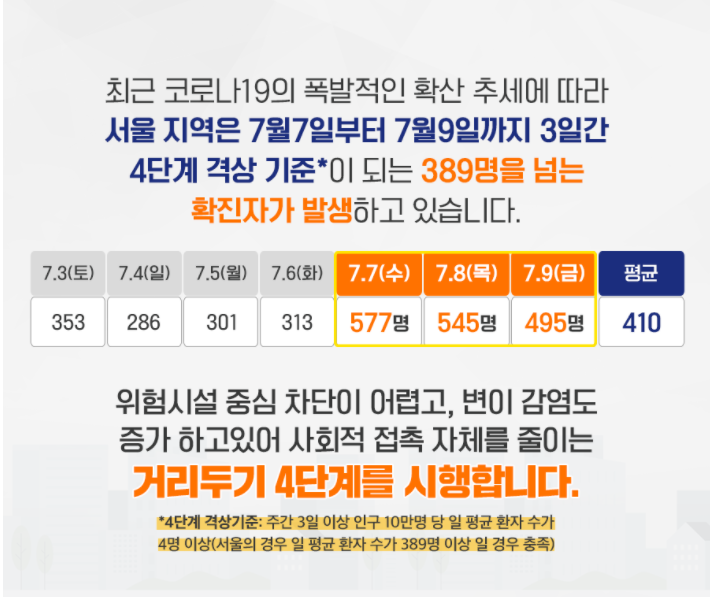 이번에 시행되는 사회적 거리두기 단계중 최상위의 것이기도 합니다.
