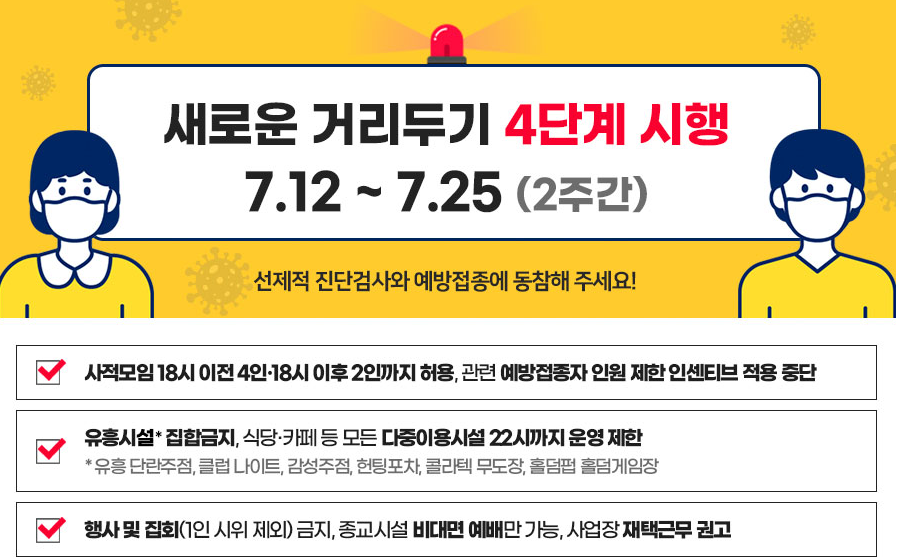 새로운 거리두기 4단계가 시행 됩니다.