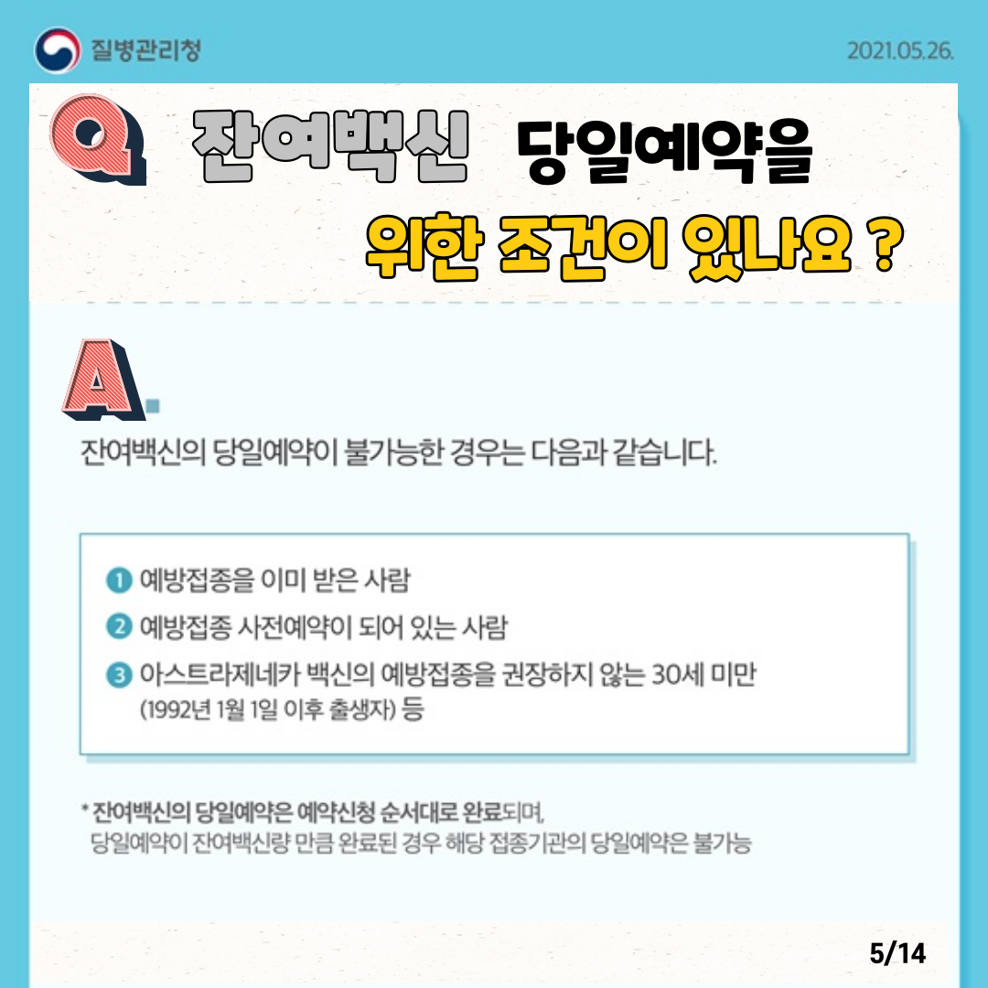 사전접종 예약 또는 접종 이력이 없다면 당일 예약신청을 해보세요.