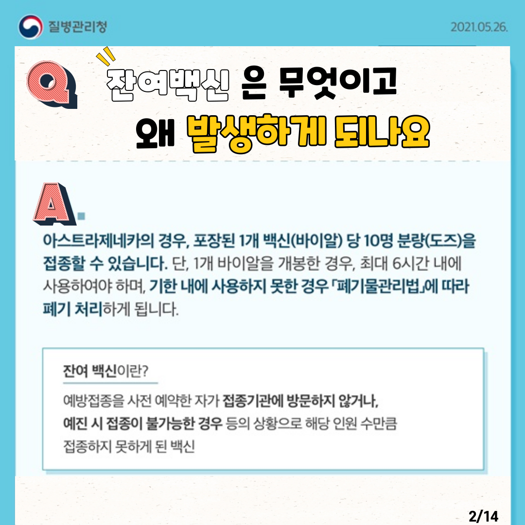 코로나19 잔여백신 폐기량 최소화를 위해 예약 후 미접종된 백신에 대해,